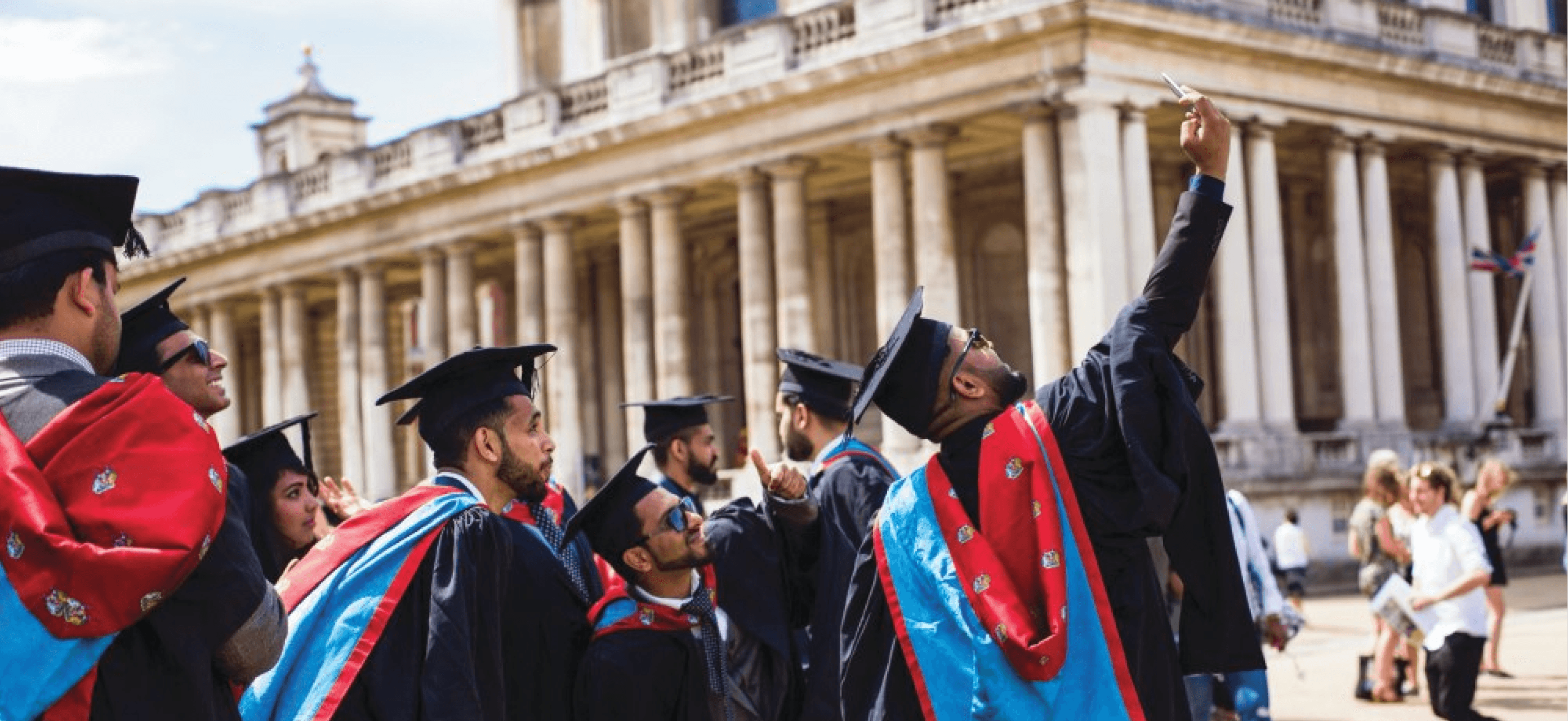 Graduates may apply to attend the official University of Greenwich graduation ceremony at the main campus — the Old Royal Naval College, a UNESCO World Heritage Site on the Thames.